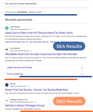 Par exemple, si un utilisateur voit votre annonce SEA pour “SUV électrique” et en dessous un lien SEO vous appartenant nommé “Guide SUV 2025” vous augmentez vos chances de clics.