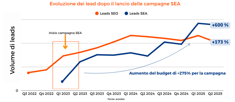 Abbiamo anche osservato un aumento dei lead SEO in correlazione con la crescita dei lead SEA.